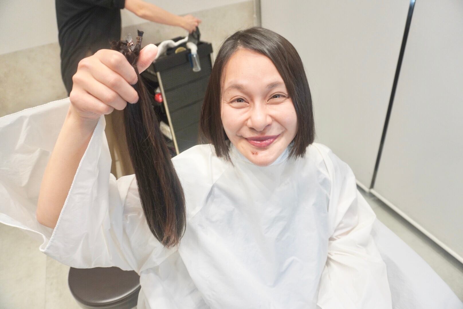 切った髪束は35cm弱あり、全てヘアドネーションさせて頂きました