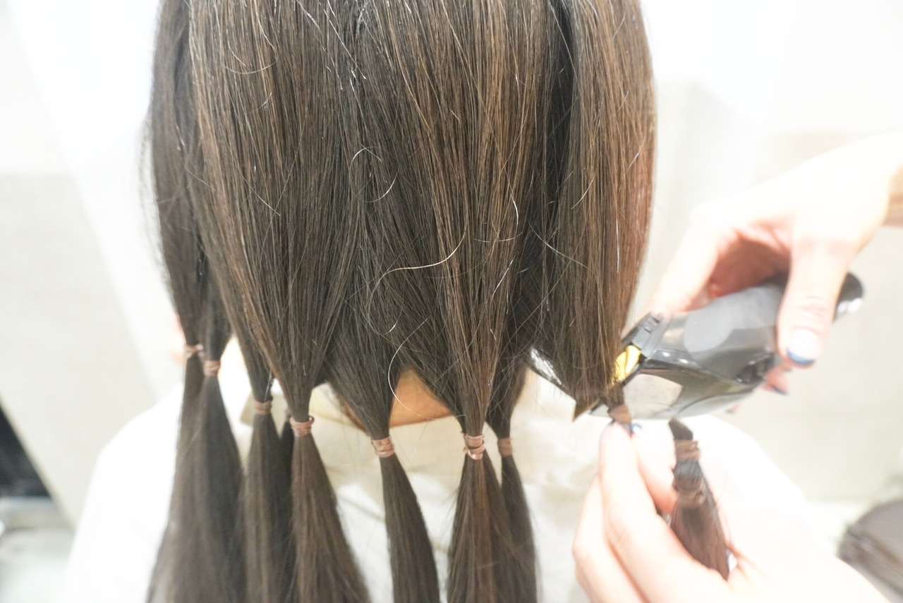 切った髪束は32cm近くあり、全てヘアドネーションさせて頂きました