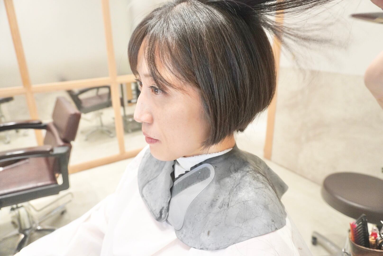 2年近く伸ばしたロングヘアを前回よりも短めのタイトなショートボブヘアにバッサリカットし、