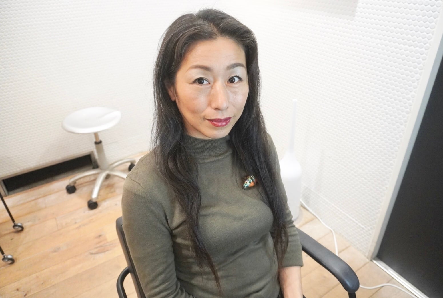 お母さんは胸下のロングヘアをロブスタイルまでバッサリ切った大変身されました