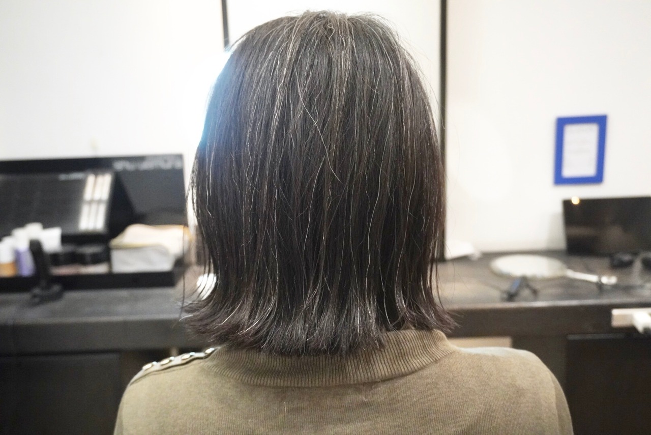 お母さんは胸下のロングヘアをロブスタイルまでバッサリ切った大変身されました