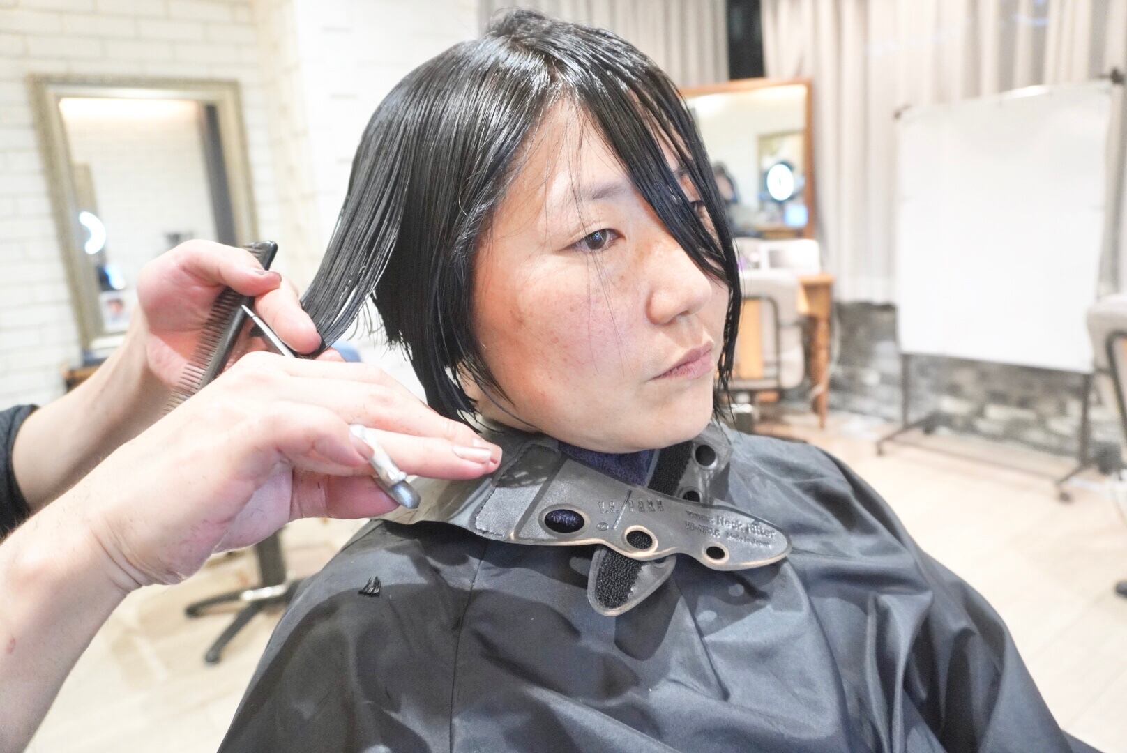切った髪束は35cm〜40cm近くあり、すべてヘアドネーションさせていただきます