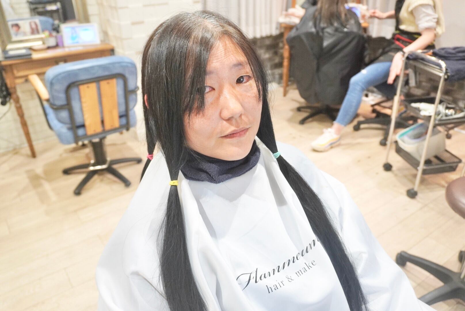 切った髪束は35cm〜40cm近くあり、すべてヘアドネーションさせていただきます