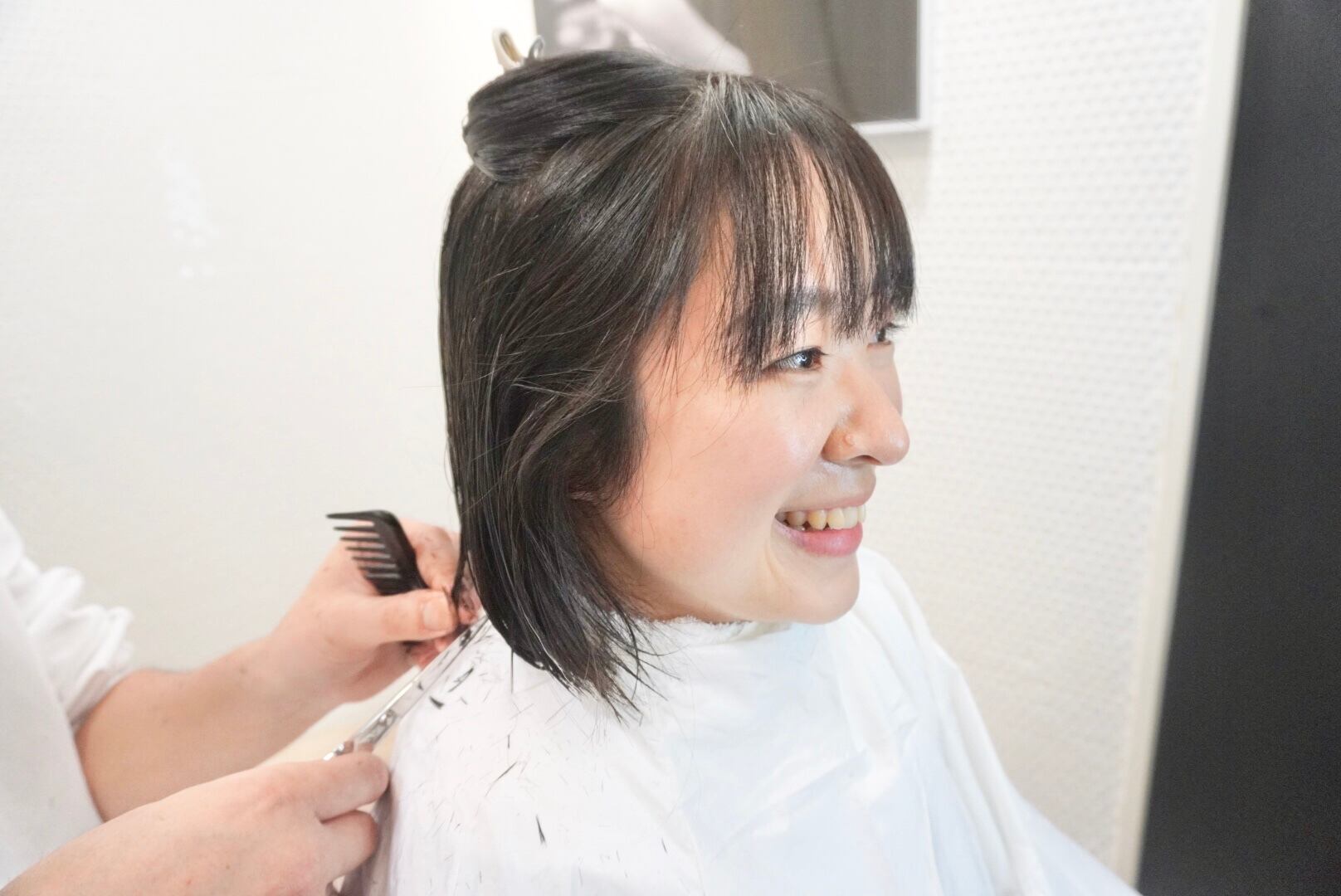 長く伸ばしたロングヘアを学生以来の外ハネボブスタイルへバッサリとカットし
