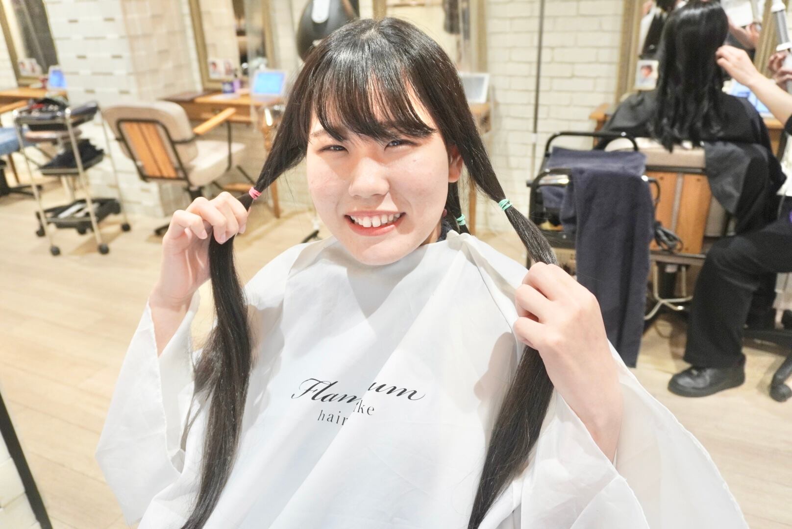 切った髪束は40cm近くあり、全てヘアドネーションいたしました!