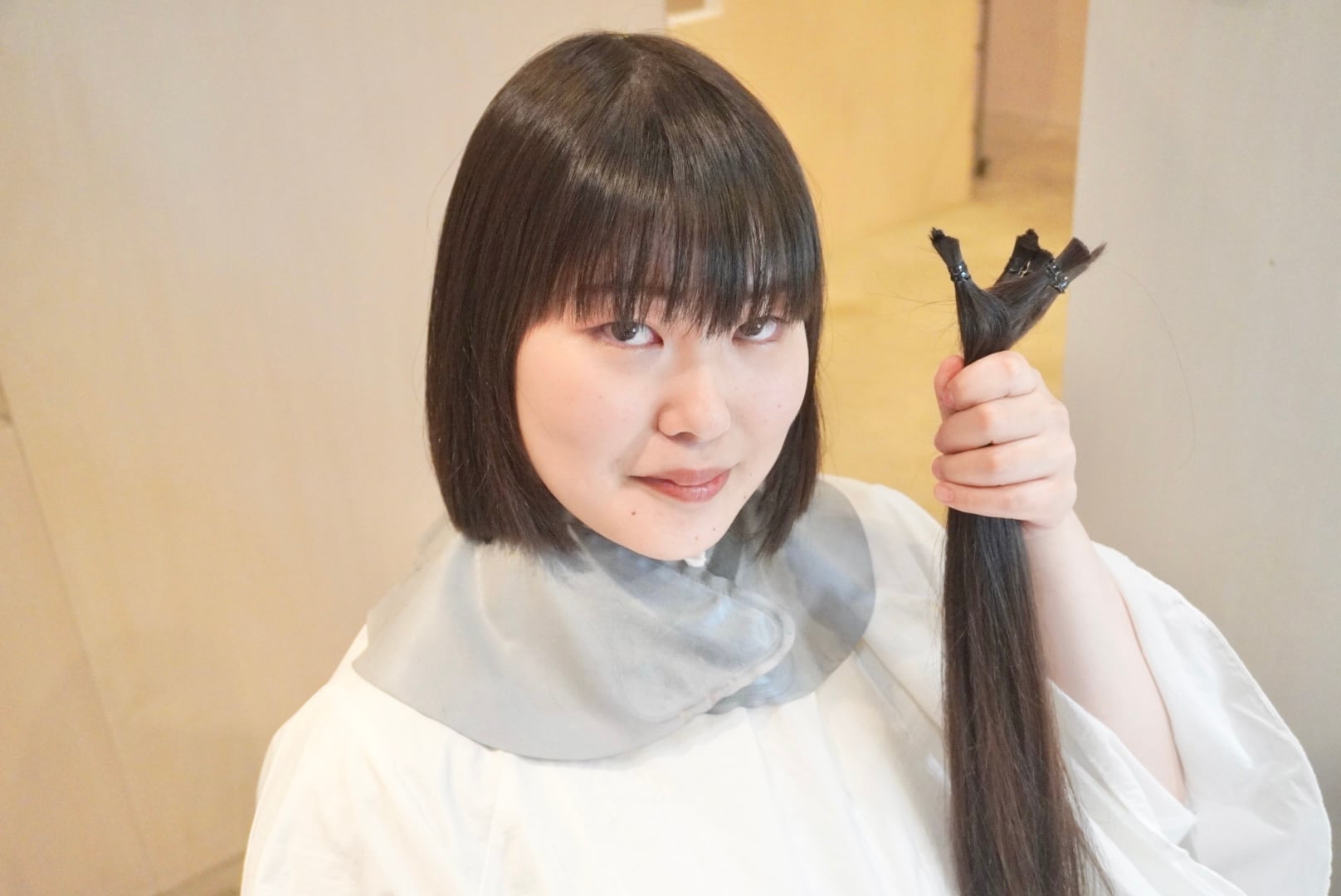 切った髪束は40cm〜45cm近くあり、全てヘアドネーションいたしました