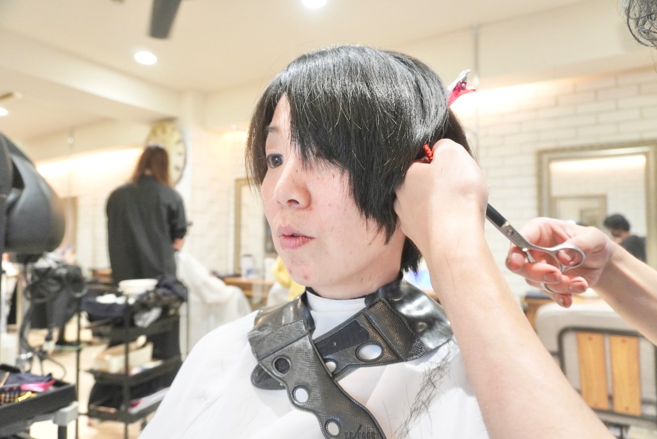 長年伸ばしたロングヘアをマッシュ系のショートヘアにバッサリカットショート大変身されました!切った髪束は35cm近くあり、モデル様2回目のヘアドネーションに挑戦されました!