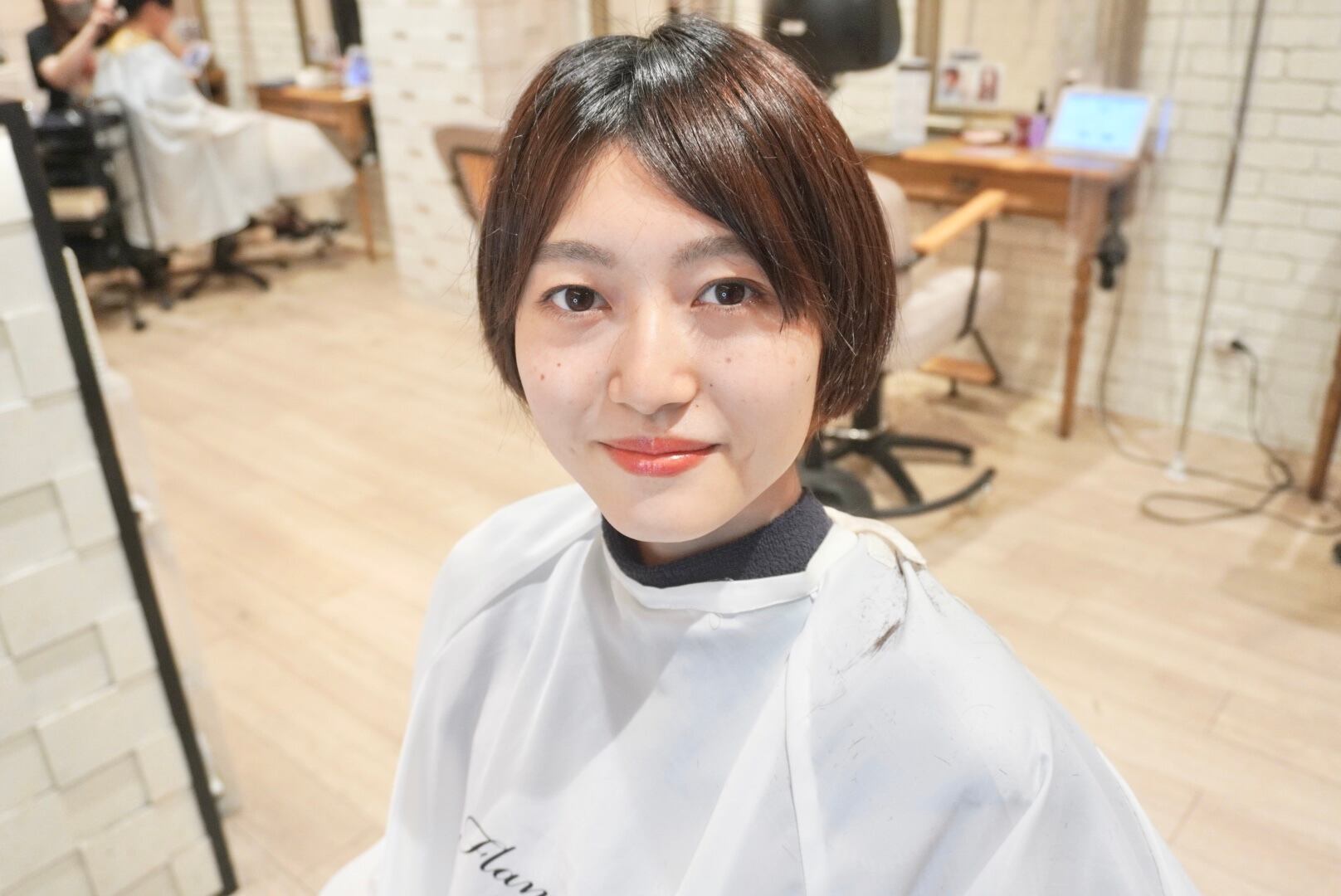 サラサラのロングヘアを人生最短のショートヘアにバッサリカットし、別人のように大変身