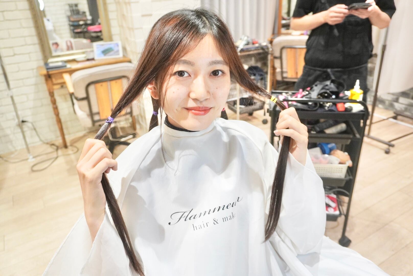 切った髪束は35cm近くあり、全てヘアドネーションいたしました