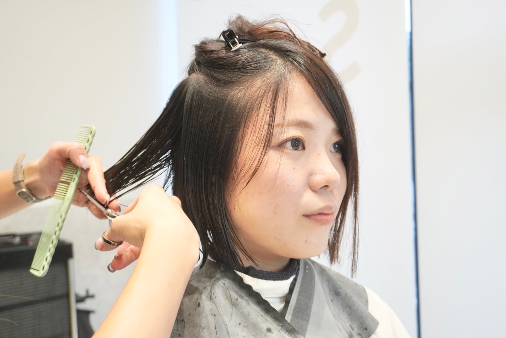 4年近く伸ばしたロングヘアをバッサリとカットし、前下がりボブヘアに初挑戦されました今回は同時にベージュ系のカラーリングも行いました
