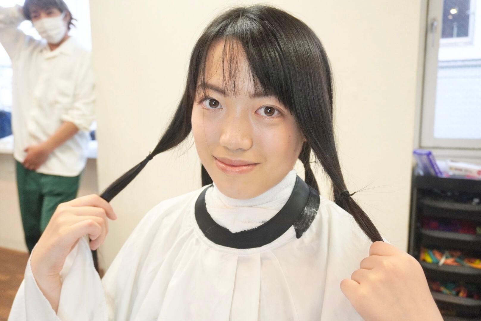 切った髪束は35cm〜40cm弱あり、今回もヘアドネーションさせて頂きました