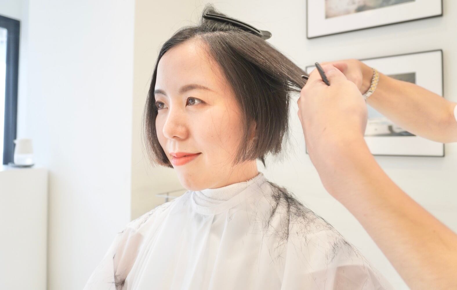 胸上のロングヘアをバッサリとショートヘアにカットし、雰囲気がガラリ変わってスッキリしたイメージになりました