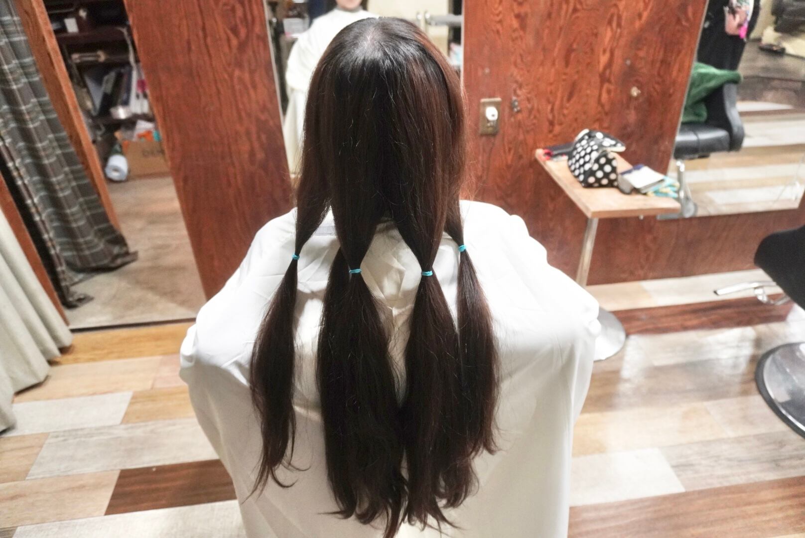 切った髪束は35cm〜40cm近くあり、今回も全てヘアドネーションを行います