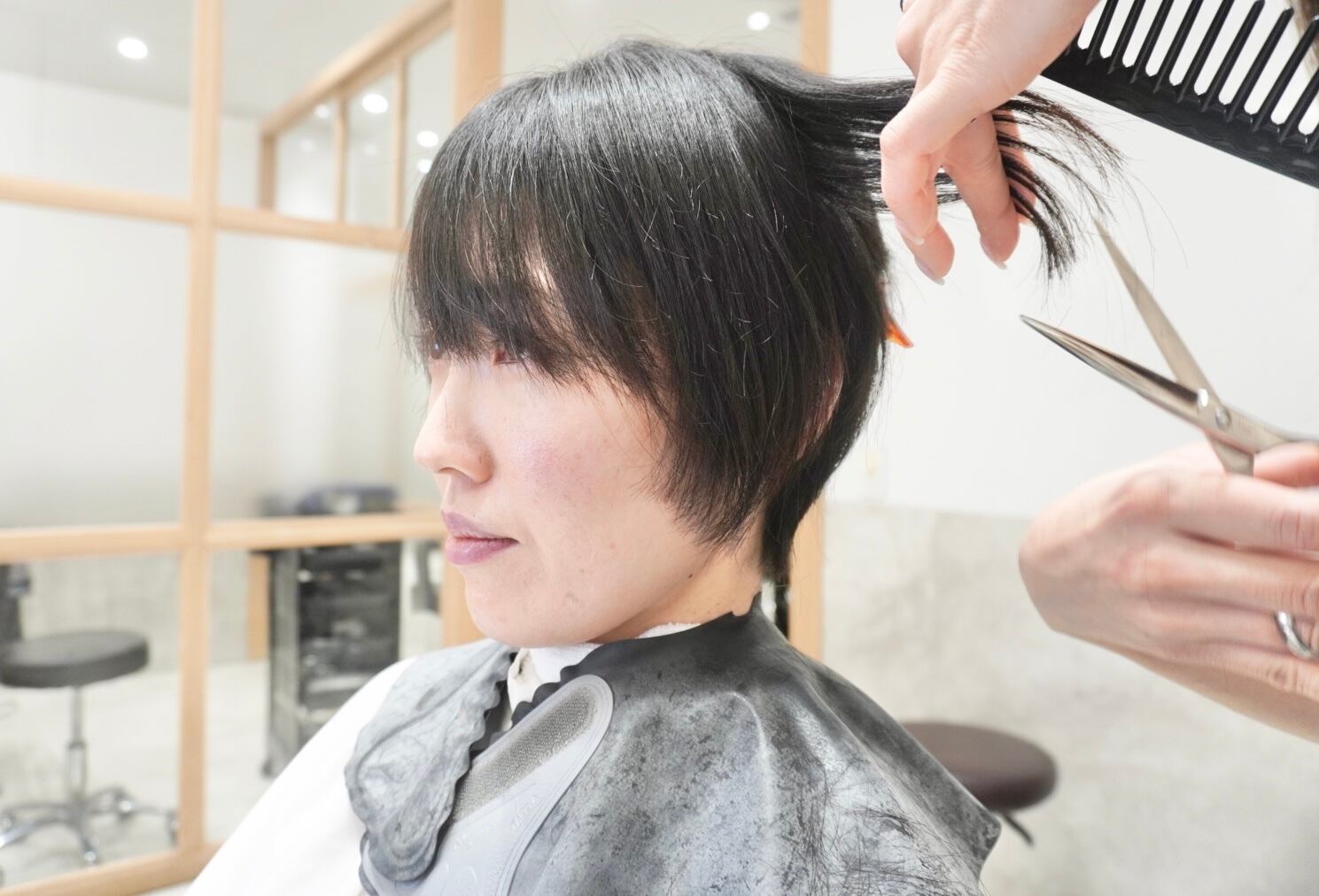 長く伸ばしたロングヘアを耳掛けショートヘアにバッサリとカットし、雰囲気が一気に変わりました❗️