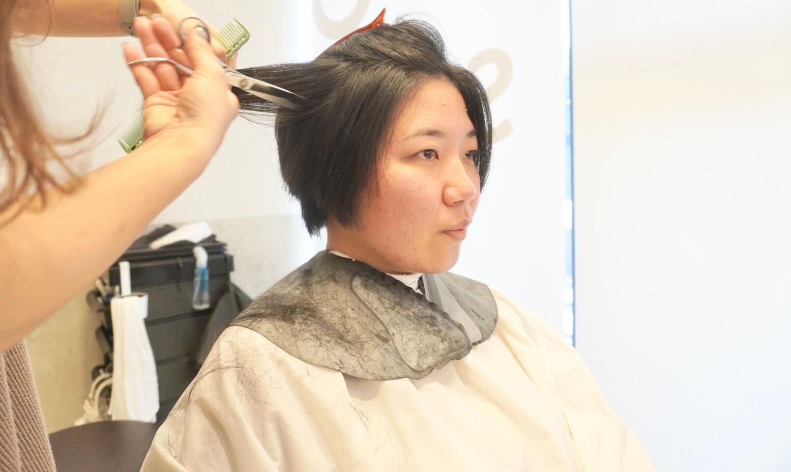 胸下のロングヘアを思い切って人生最短のショートヘアにバッサリとカットし大変身されました!切った髪束は35cm近くあり、今回も全てヘアドネーションさせて頂きました
