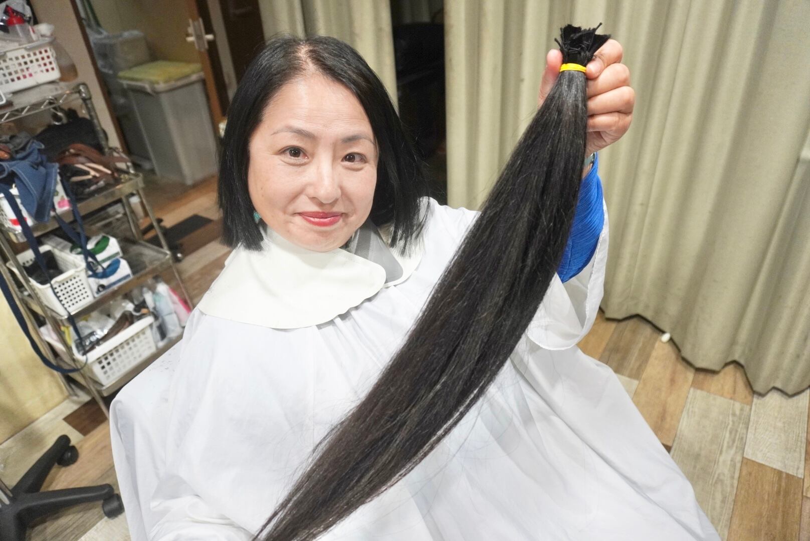 腰近くまであるロングヘアをバッサリと長めボブスタイルにカットし大変身されました!切った髪束は50cm近くあり、全てヘアドネーションさせて頂きました!