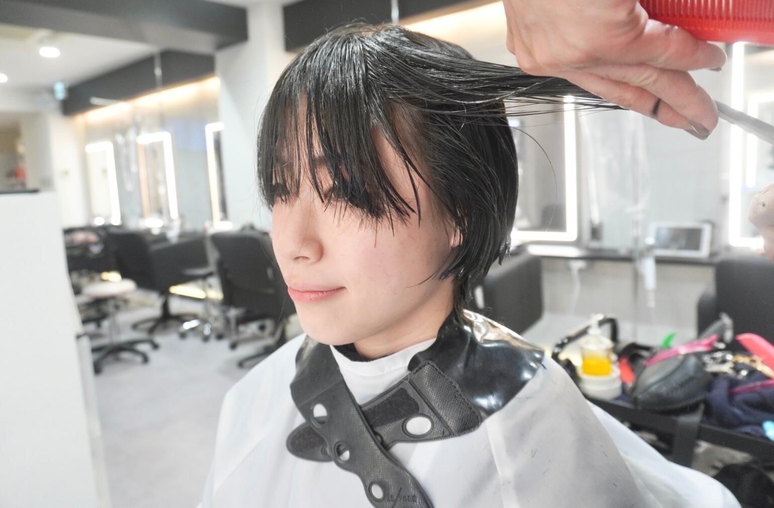 切った髪束は35cm近くあり、全てヘアドネーションさせて頂きました。毛量も多めでした