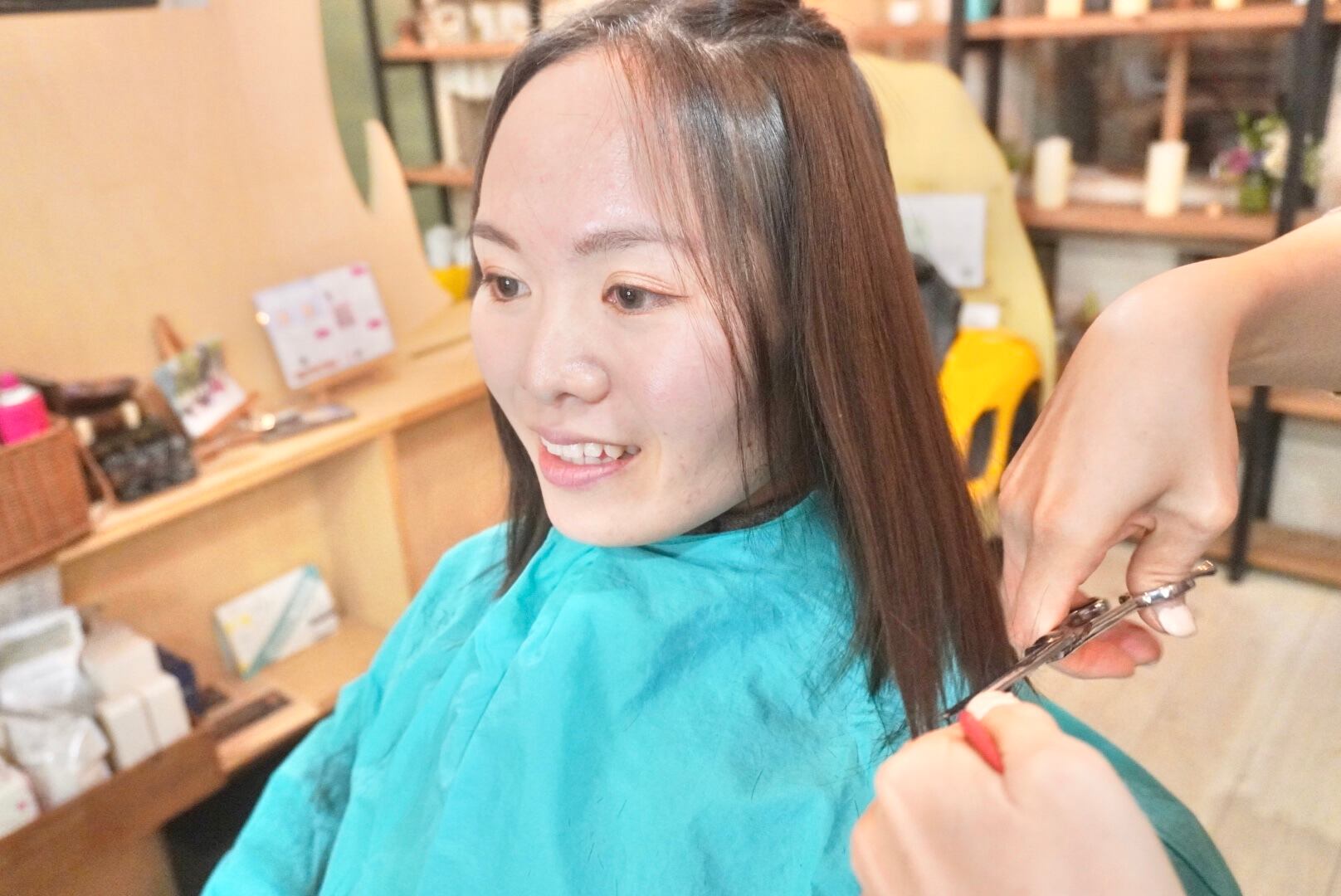 前回撮影から4年近く伸ばした髪を伸ばしやすいミディアムスタイルにカットし大変身されました!切った髪束は35cm近くあり、当企画にて3回目のヘアドネーションに挑戦されました