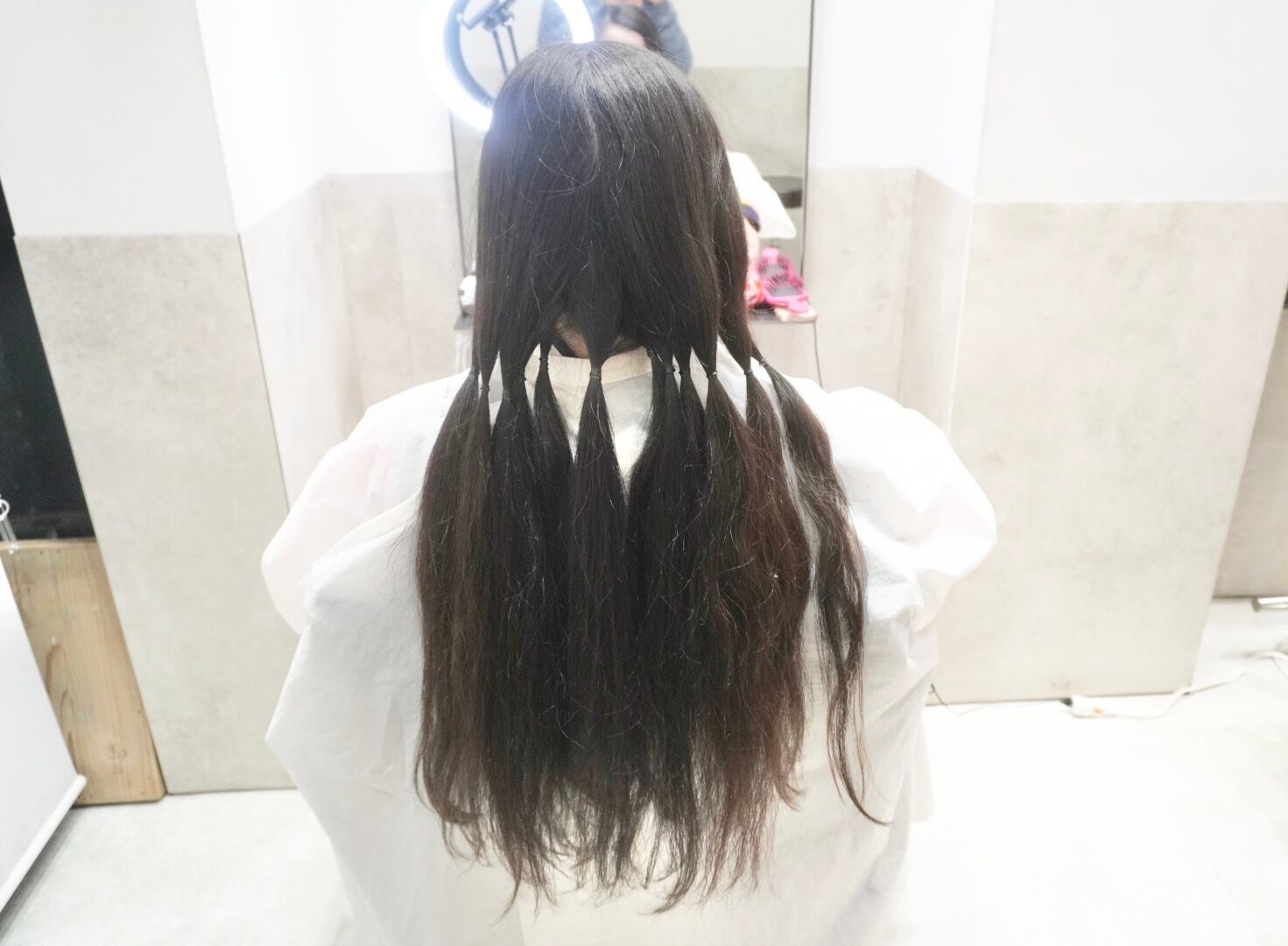 切った髪束は40cm近くあり、髪全てヘアドネーションさせて頂きました