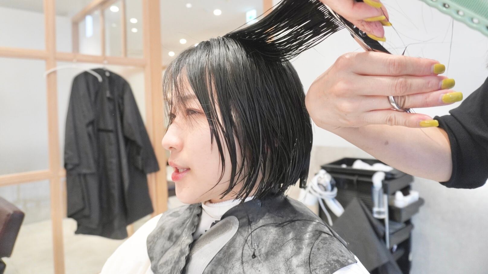 胸下ロングヘアを4年ぶりに前下がりボブヘアにバッサリとカットしスッキリとした印象にイメチェン‼️