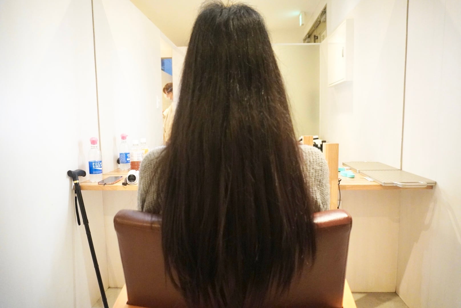 今回切った髪束は35cm〜40cm近くあり、全てヘアドネーションさせて頂きました。