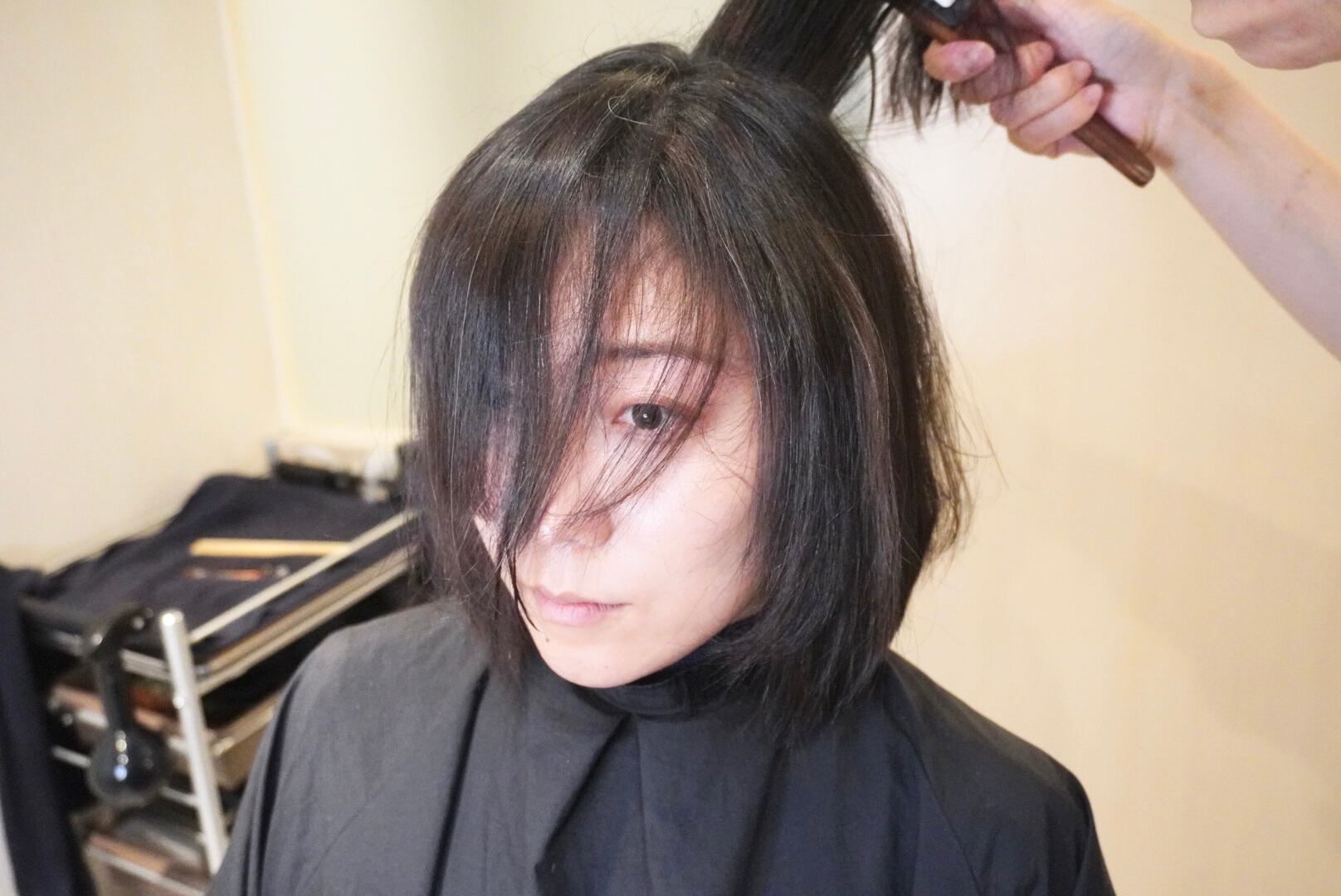 前回撮影以来伸ばしたロングヘアを再びバッサリカットし、長めのボブヘアに&同時にハイライトカラーも行い大変身されました❗️