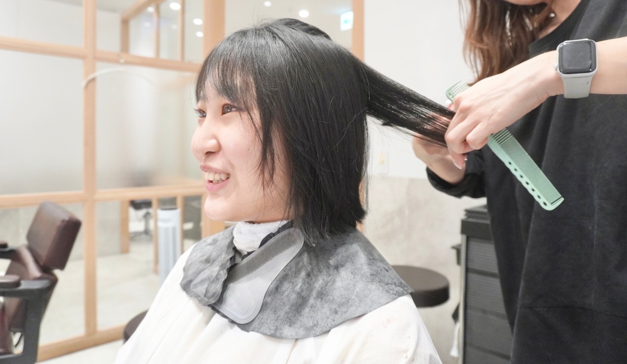 今回切った髪束は32cm近くあり、モデル様4回目(企画では2回目)のヘアドネーションに挑戦されました。