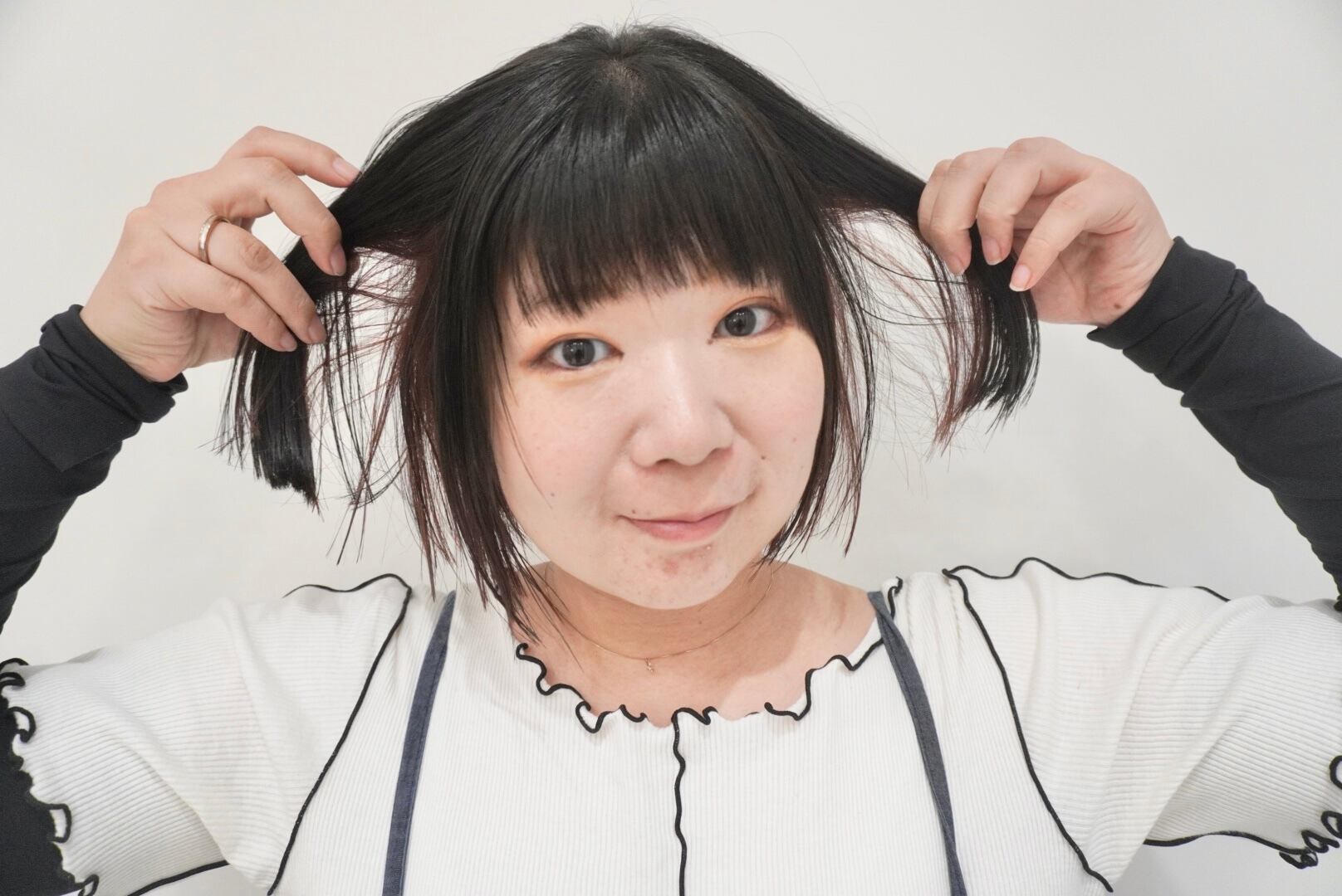 3年ぶりに伸ばした髪をボブスタイルまでバッサリとカットし、同時にブリーチも行い、ピンク系のインナーカラーも入れました❕