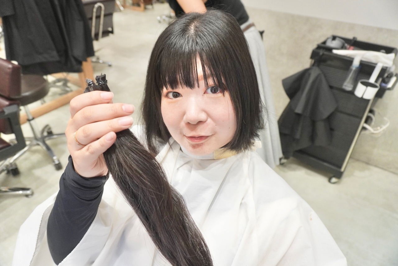 切った髪束は32cm近くあり、2度目のヘアドネーションを行いました。