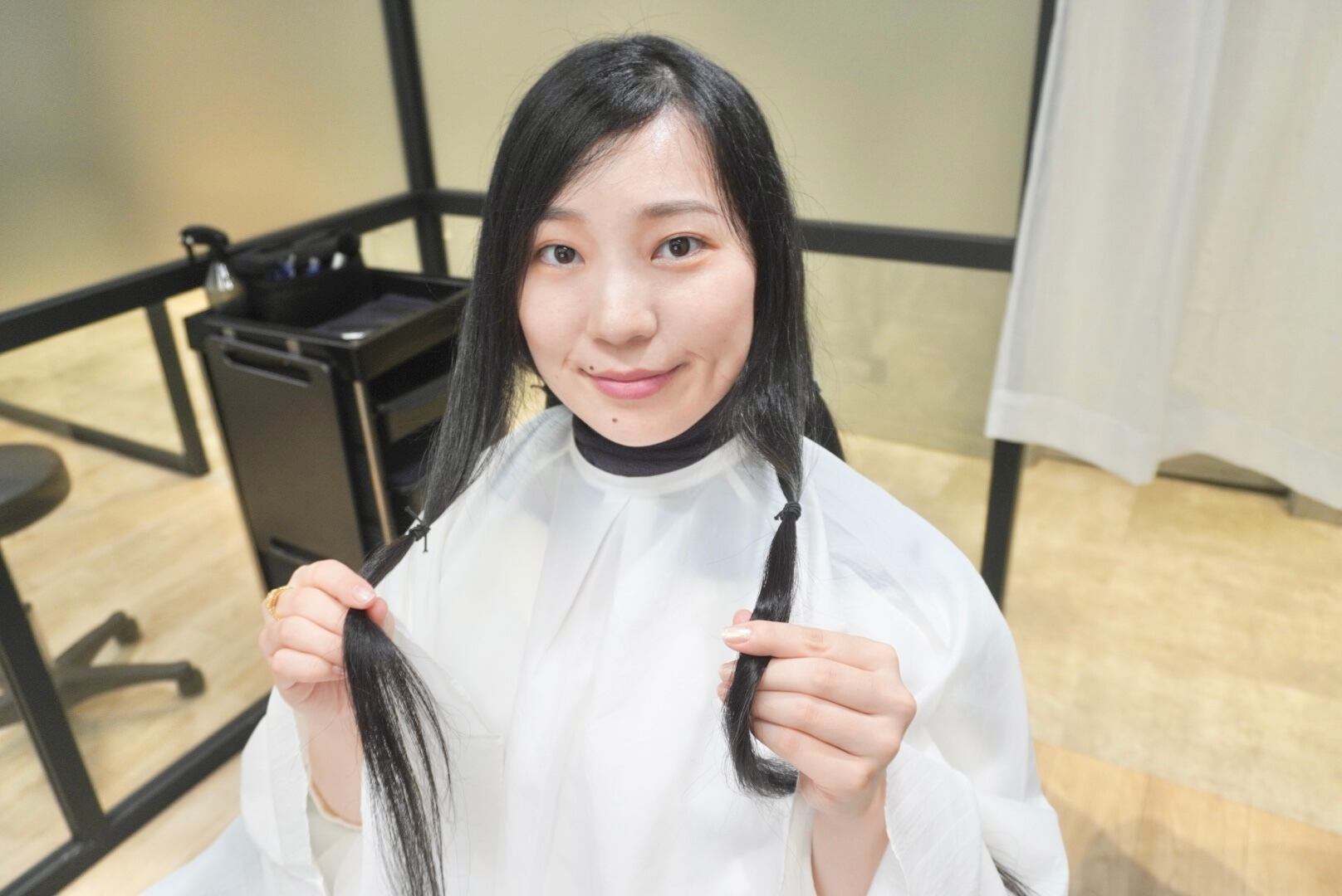切った髪束はなんと80cm近くもあり、全てヘアドネーションさせて頂きました。