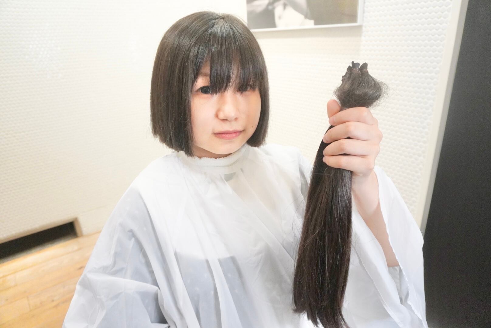 切った髪束は40cm近くあり、全てヘアドネーションさせて頂きました。