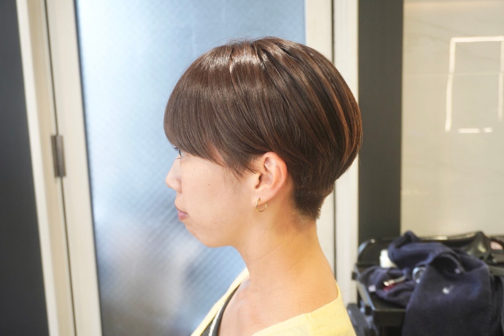 長く伸ばしたロングヘアをマッシュ風ショートヘアにバッサリとカットし、カラーリングも行ってアッシュ系の艶やかなカラーに仕上げました❕