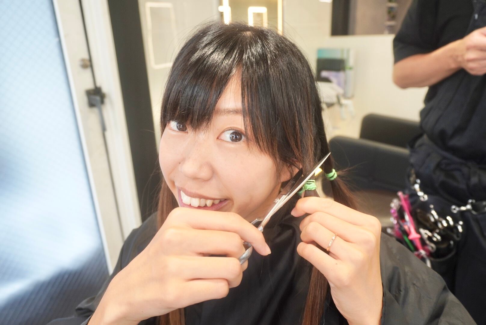 切った髪束は32cm〜35cm近くあり、全てヘアドネーションさせて頂きます。
