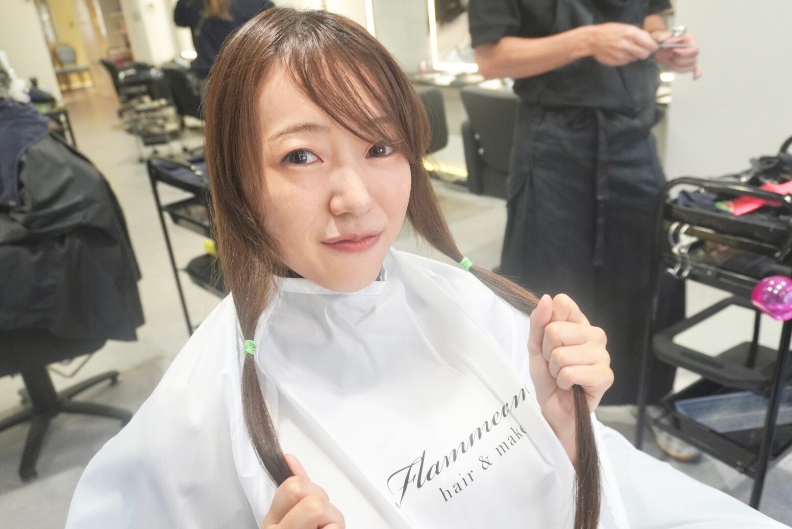 切った髪束は35cm〜40cm近くあり、全てヘアドネーションさせて頂きました。