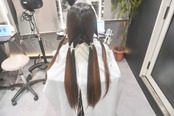 切った髪束は45cm〜50cm近くあり、全てヘアドネーションさせて頂きました。
