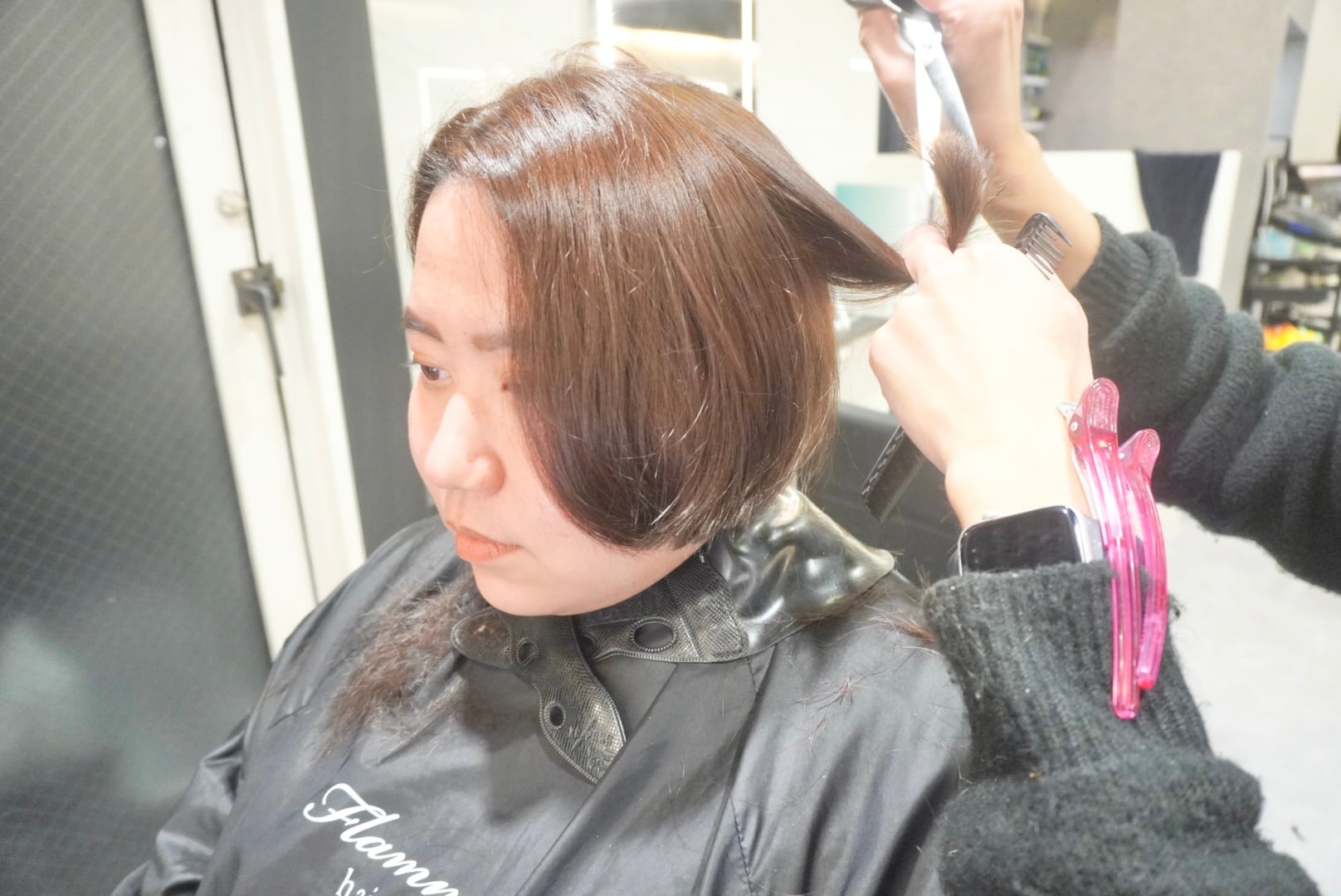 スーパーロングヘアを中学生以来となるショートヘアにバッサリとカットし、カラーリングを行い、ブラウンカラーへと染めました✂️
