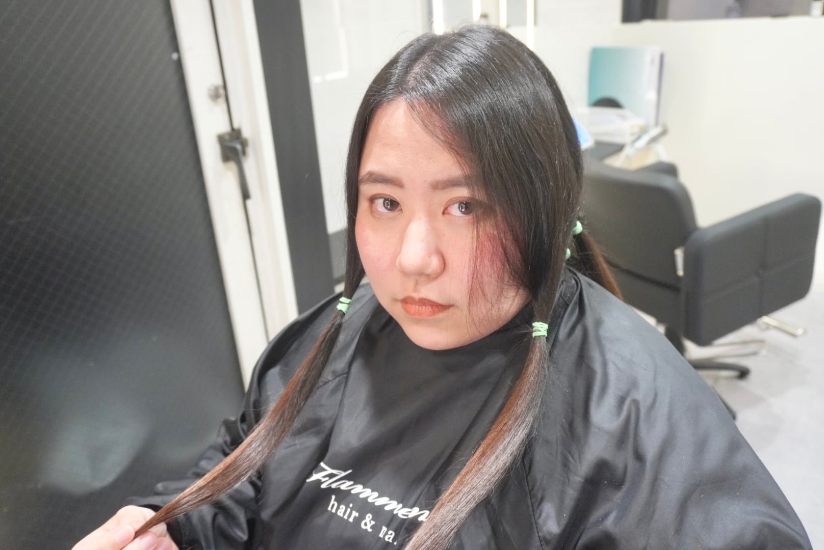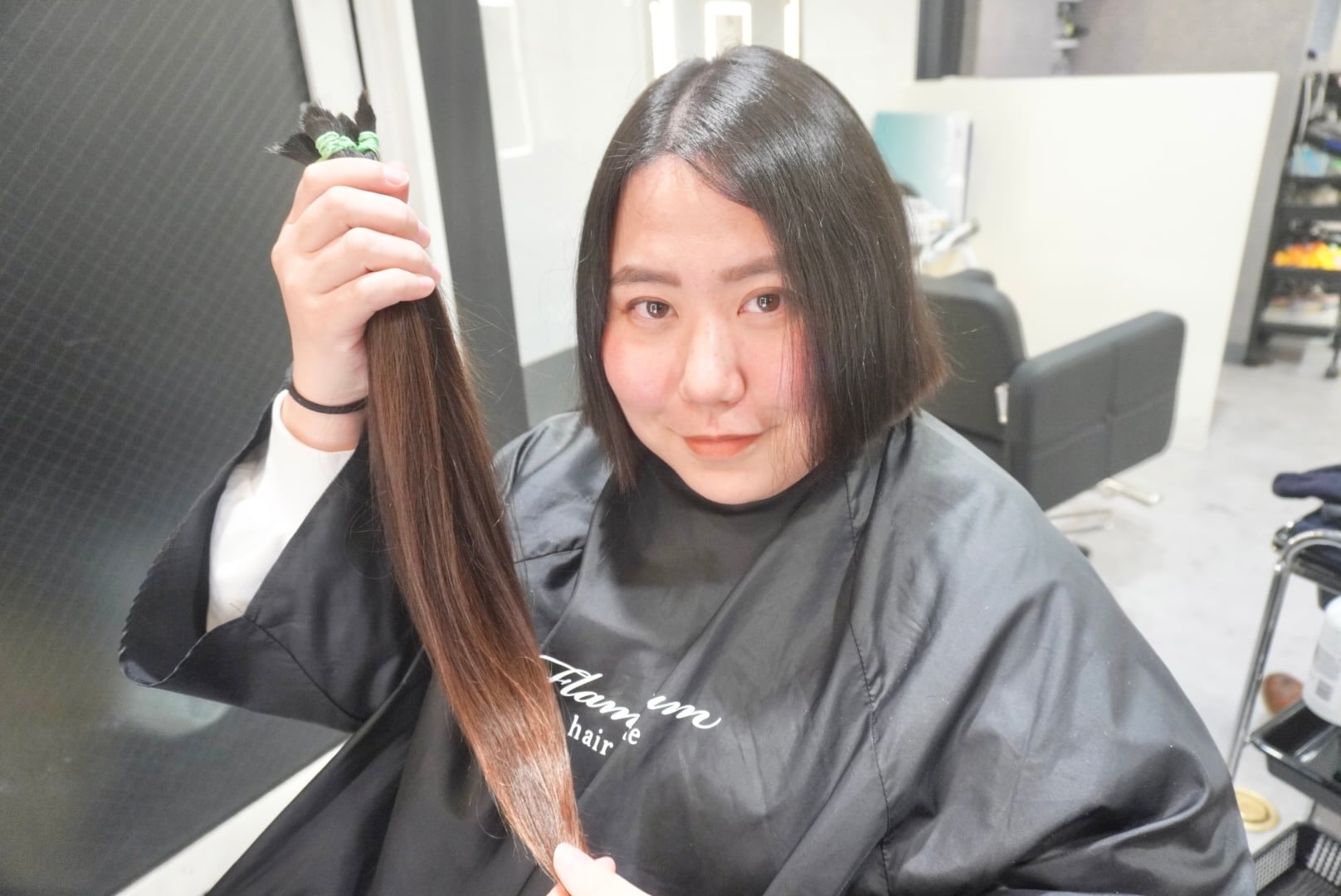 切った髪束は50cm近くあり、すべてヘアドネーションいたしました。