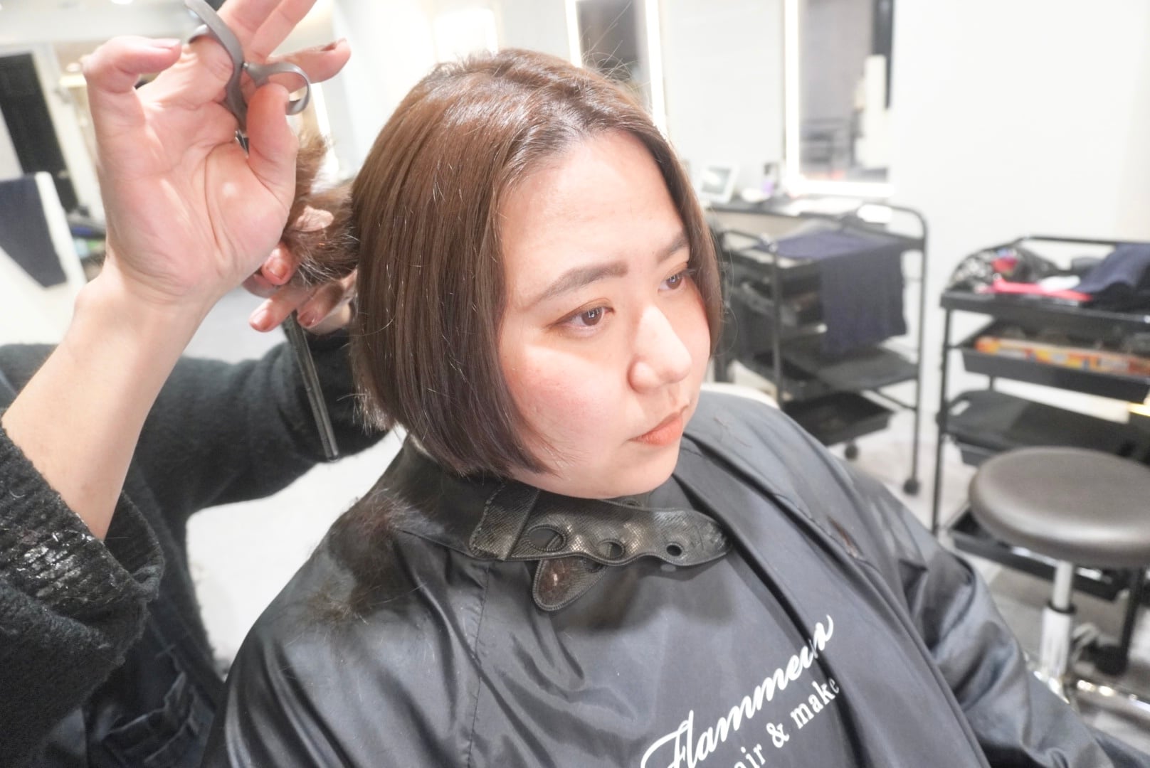 スーパーロングヘアを中学生以来となるショートヘアにバッサリとカットし、カラーリングを行い、ブラウンカラーへと染めました✂️