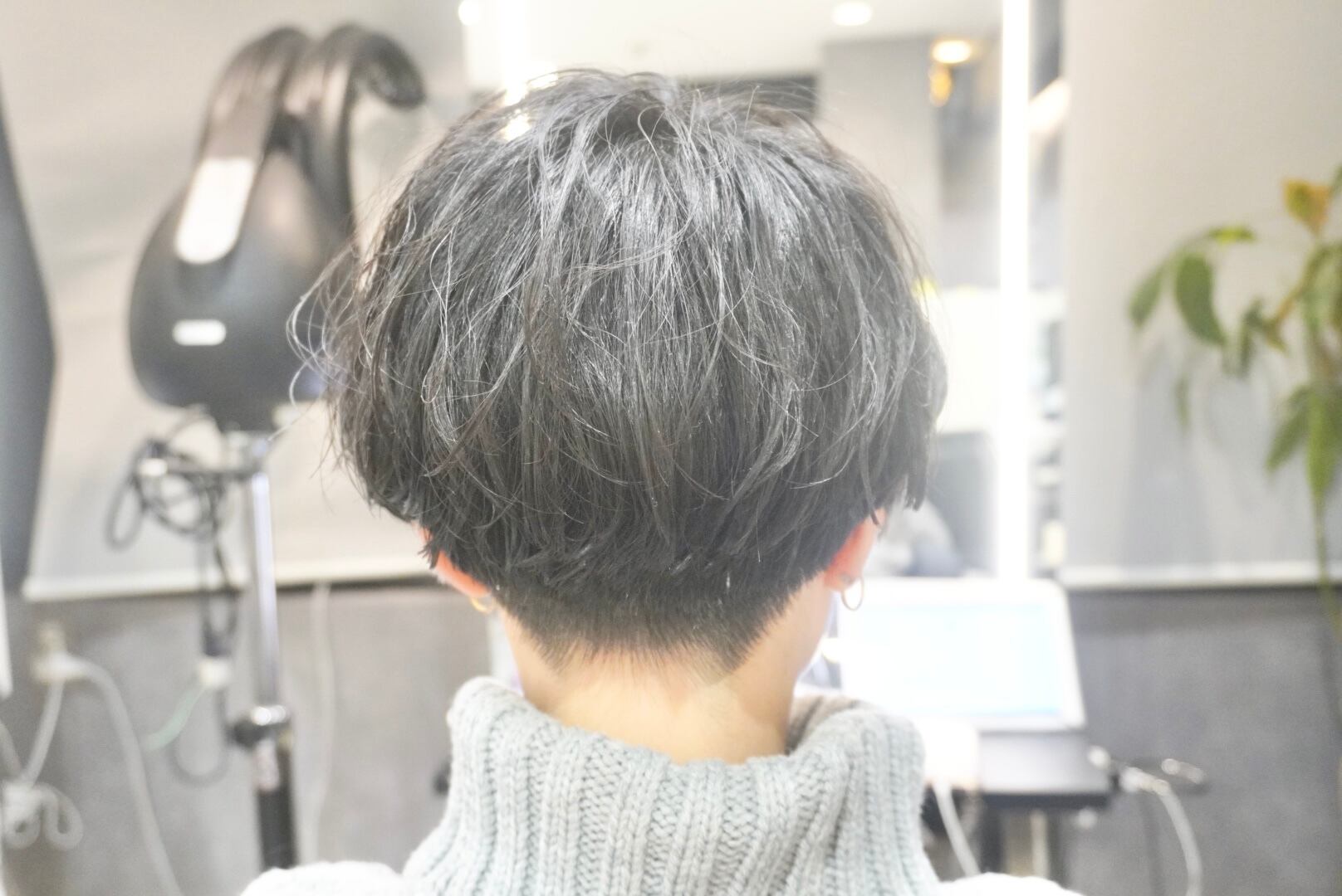 胸近くまで伸びたロングヘアをバッサリとマッシュ風の刈り上げショートヘアまでバッサリとカットし、同時にパーマも行いました❗️