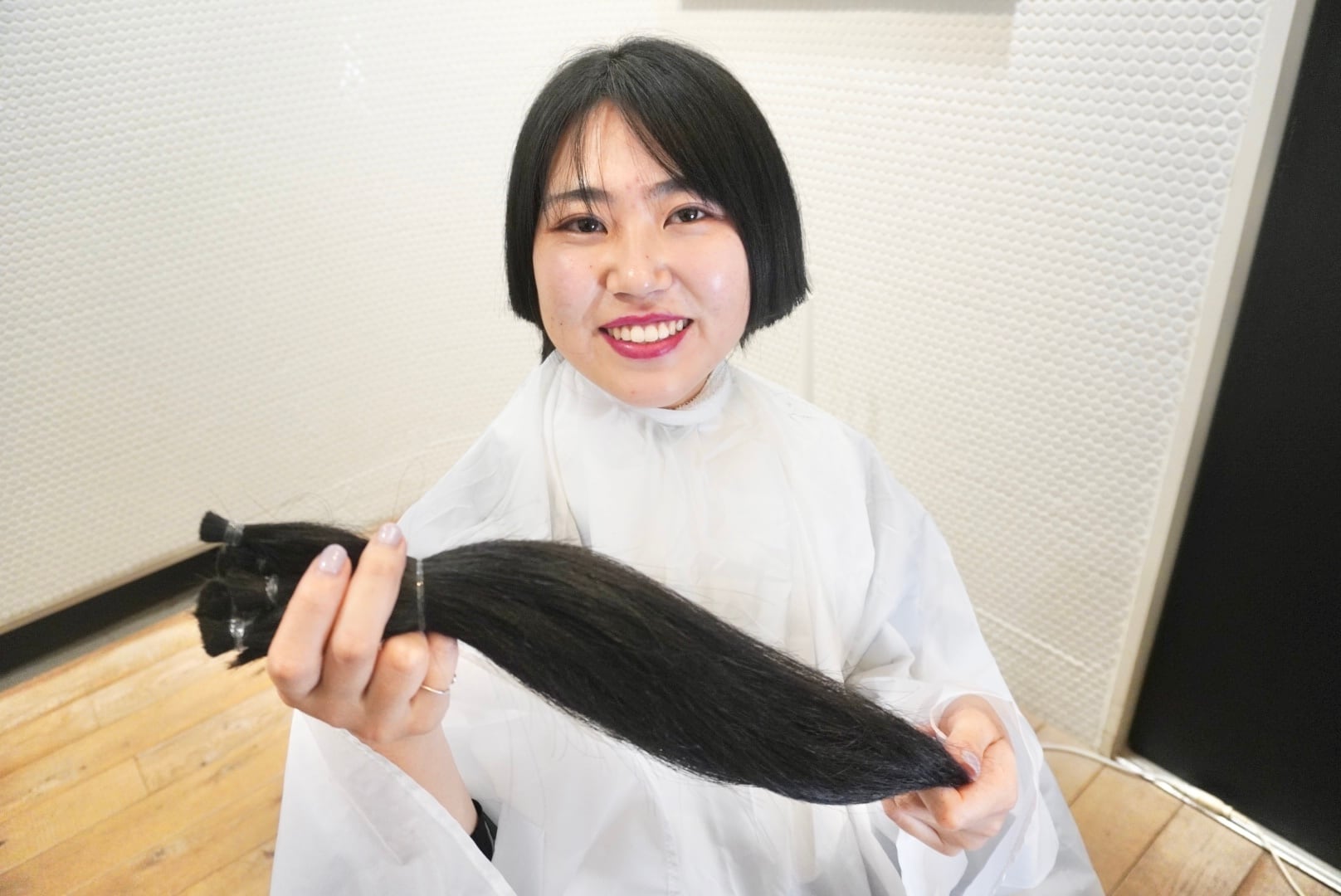 3年近く伸ばした髪を着物が映えるショートスタイルにバッサリカットし、素敵に大変身されました✂︎ 切った髪束は35cm近くあり、ヘアドネーションさせて頂き、モデル様2回目のヘアドネーションを行いました。