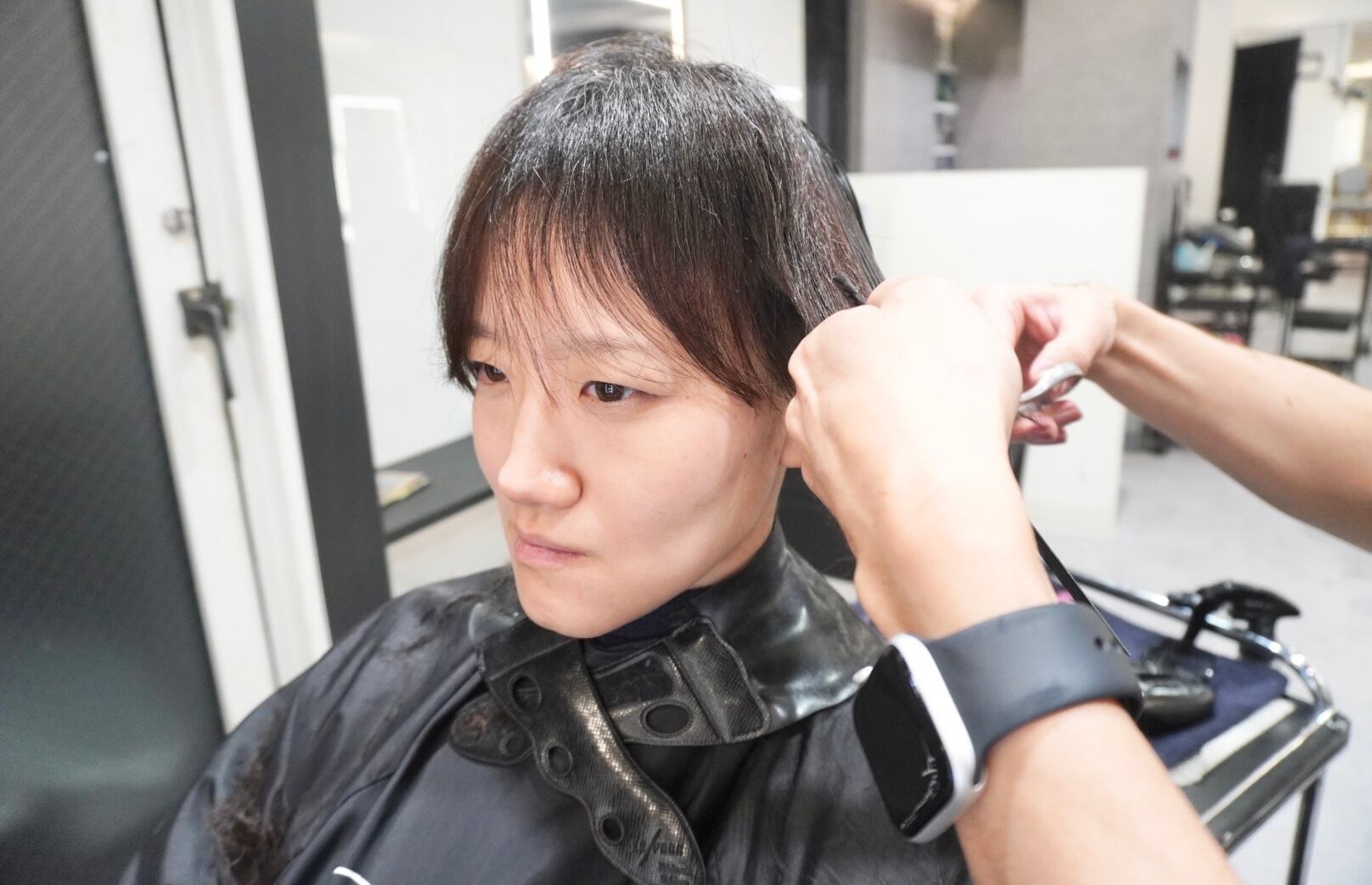 ずっと伸ばしたロングヘアを人生最短の刈り上げマッシュショートに思い切ってバッサリとカットし、カラーリングも行って明るめのピンク系カラーで仕上げました。