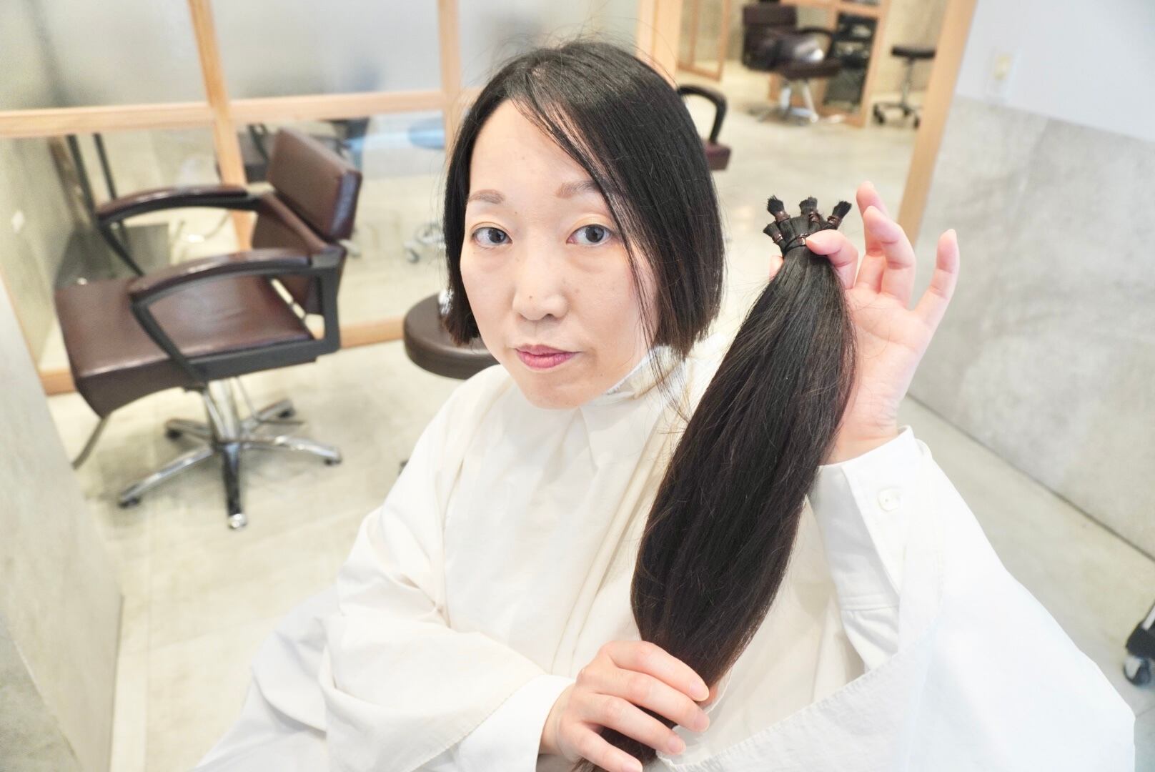 切った髪束は32cm近くあり、全てヘアドネーションさせて頂きました。