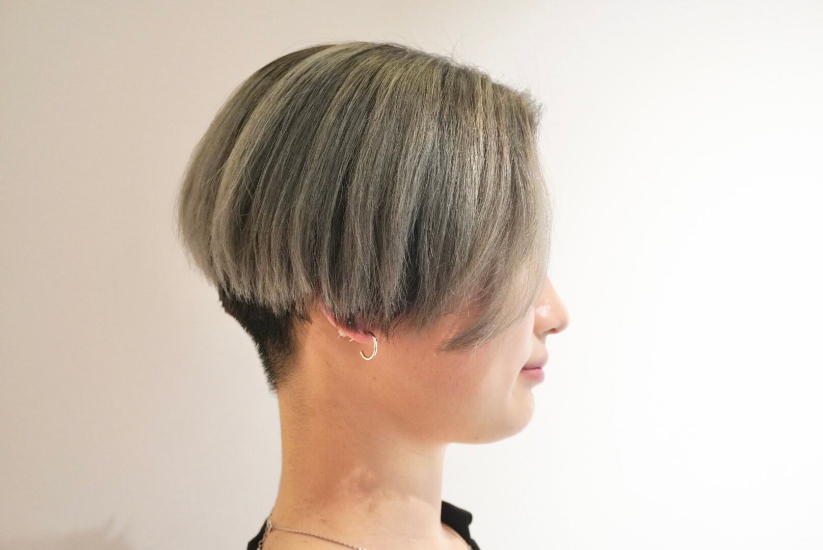 5年近く伸ばしたロングヘアを人生最短のハンサム風刈り上げショートヘアにバッサリとカットし、さらにブリーチカラーを行ってグレージュカラーに仕上げました✂︎✂︎