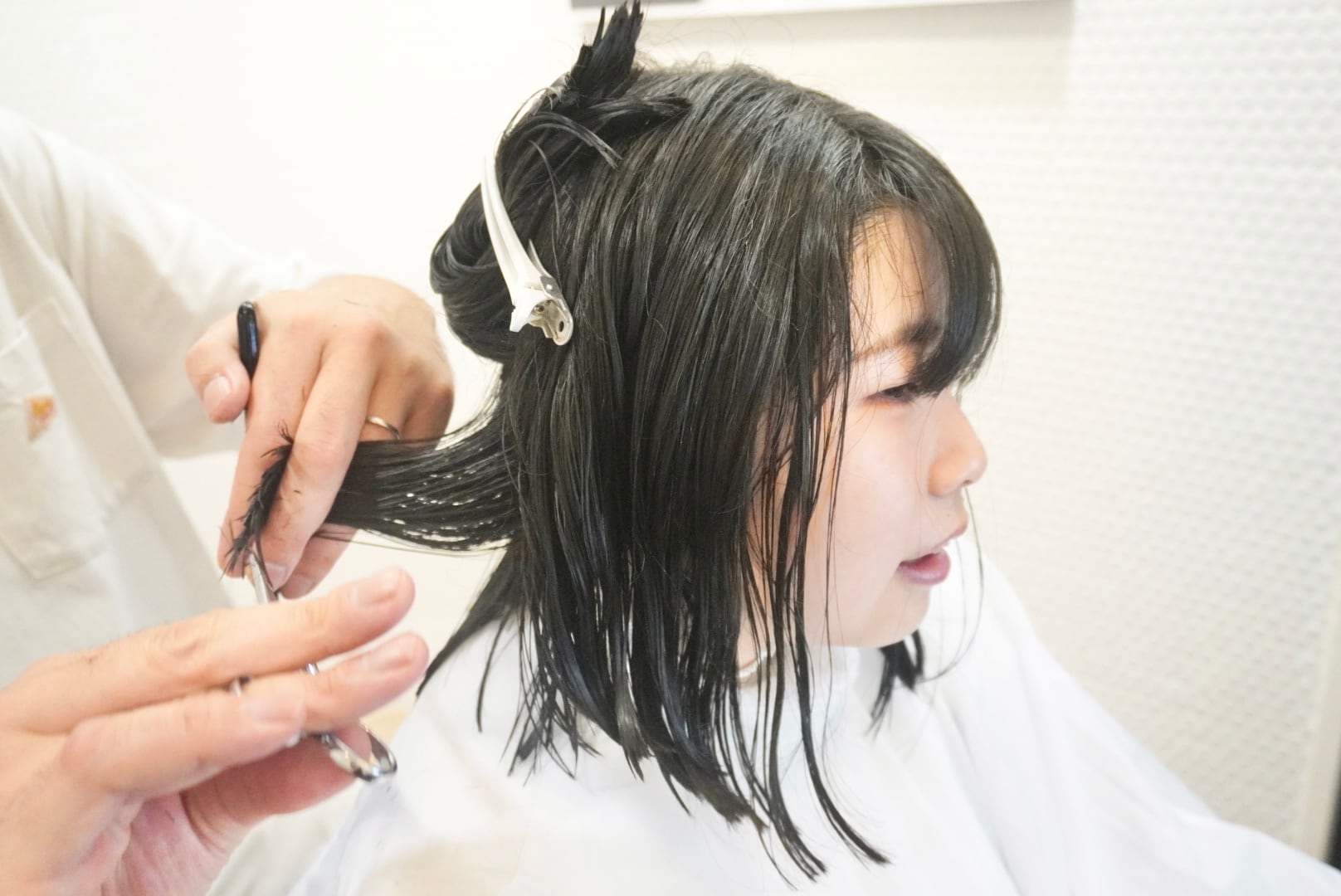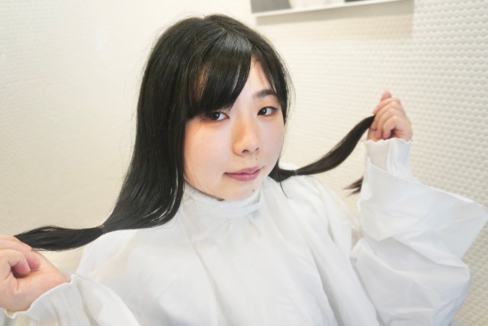 切った髪束は35cm近くあり、モデル様念願のヘアドネーションを行いました。