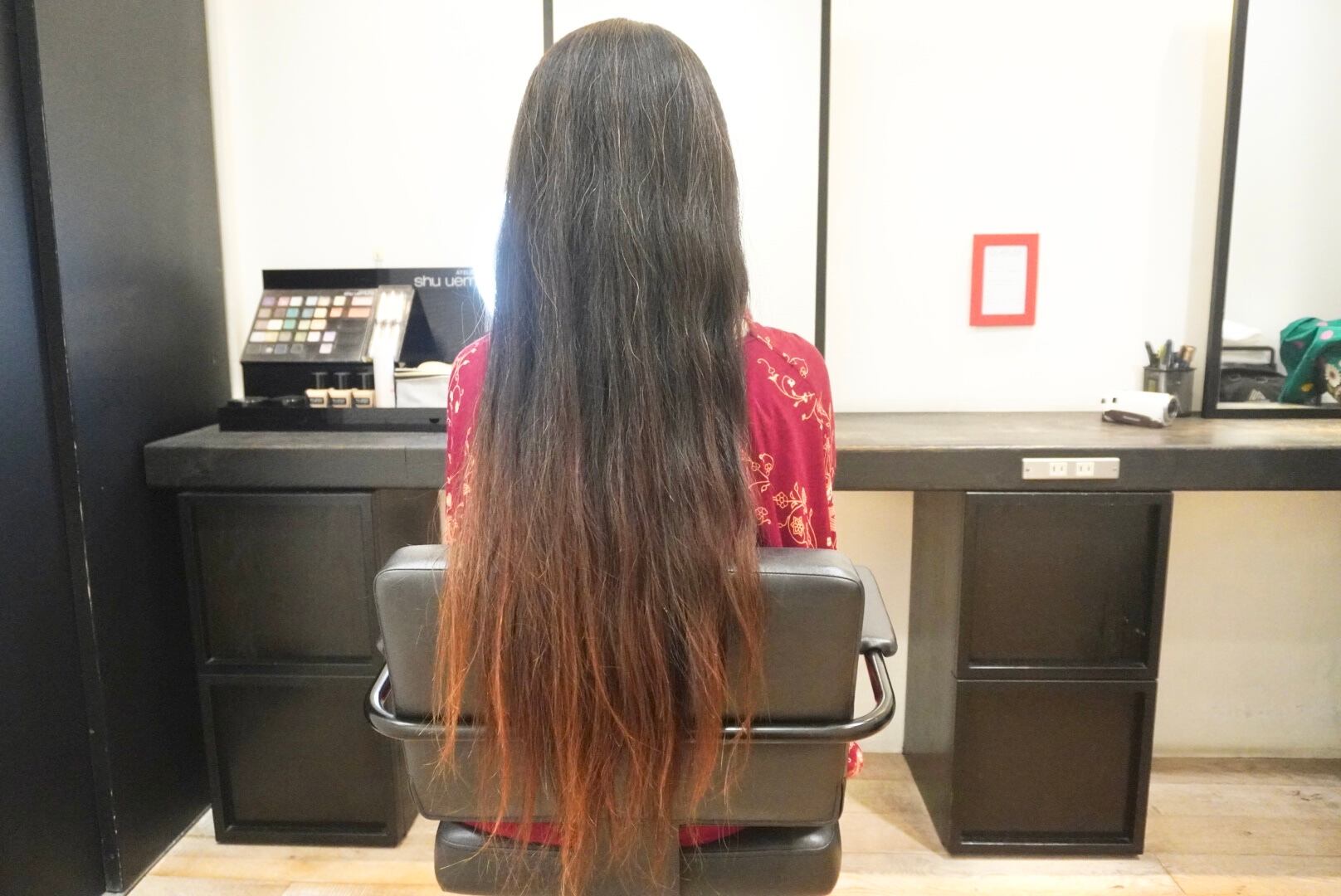 切った髪束は50cm近くあり、全てヘアドネーションさせて頂きました。