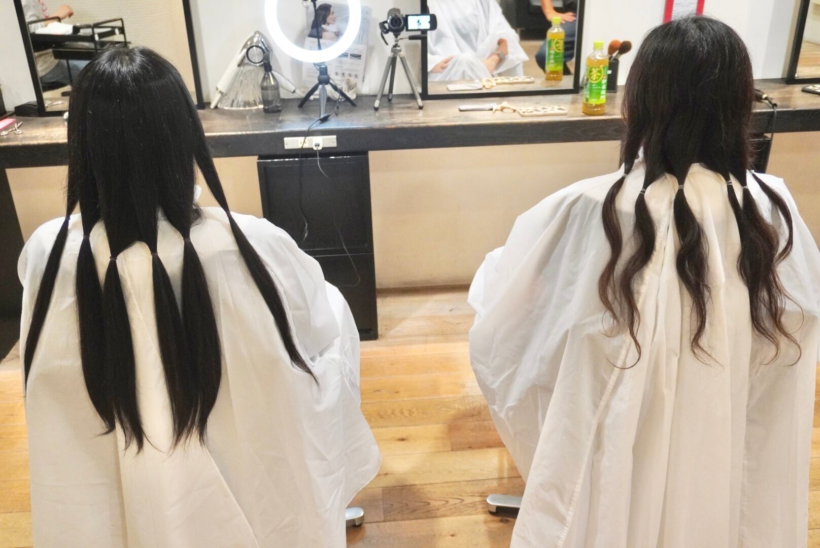 切った髪束はそれぞれ31cm近くあり、全てヘアドネーションさせて頂きました。