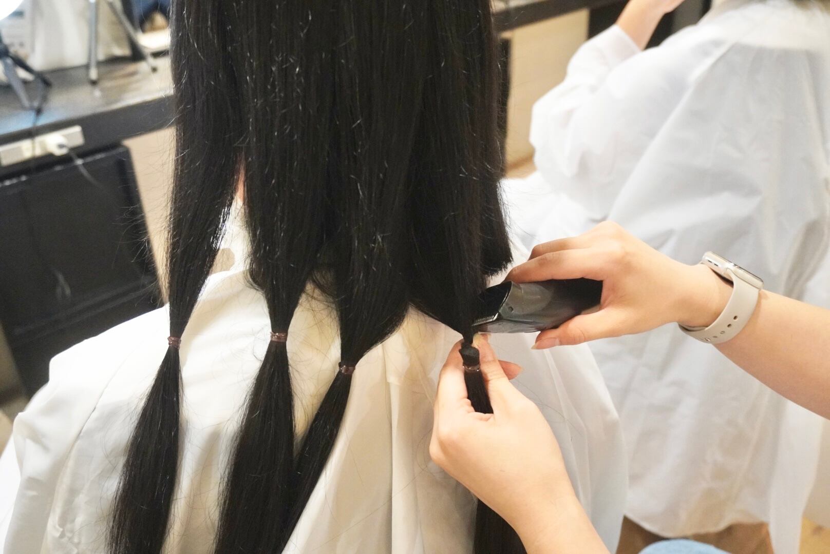 切った髪束はそれぞれ31cm近くあり、全てヘアドネーションさせて頂きました。
