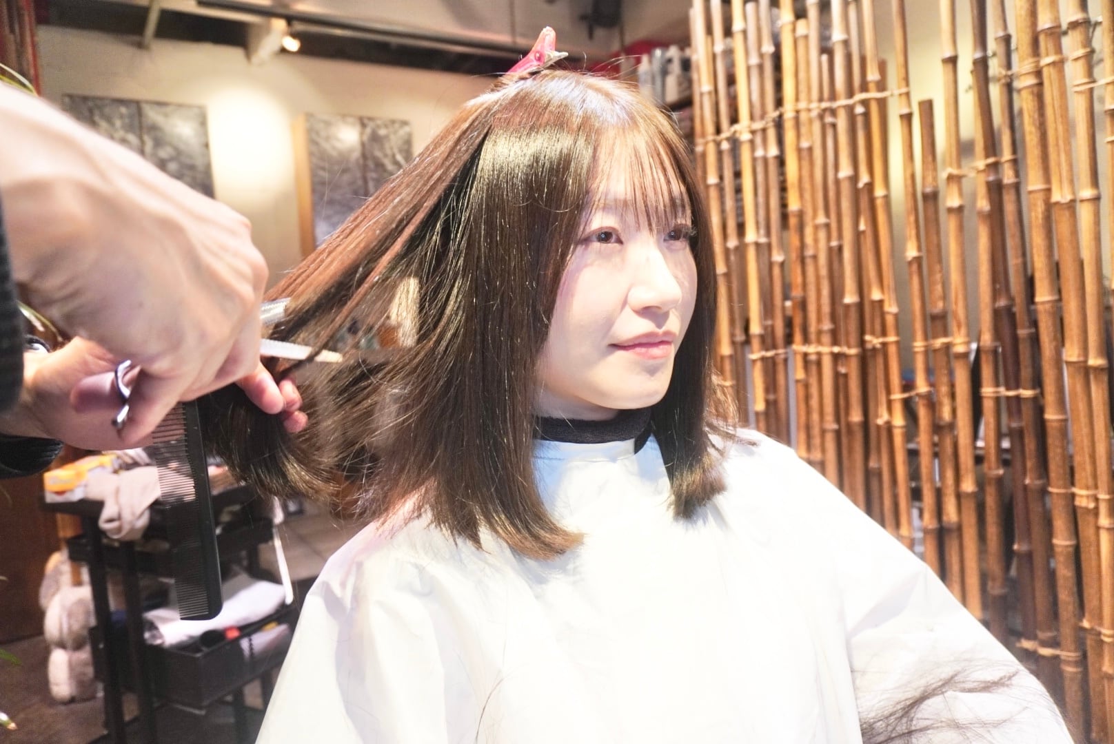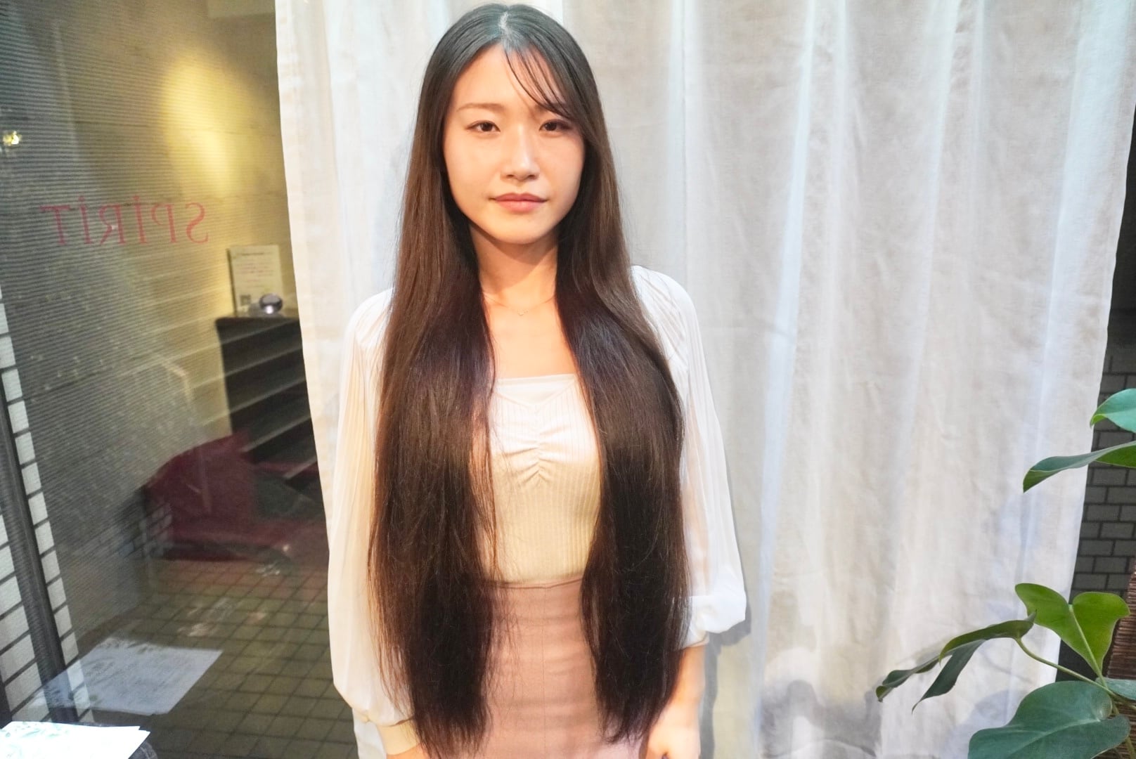 切った髪束は50cm近くあり、ヘアドネーションを行ってモデル様4回目のヘアドネーションを達成しました。