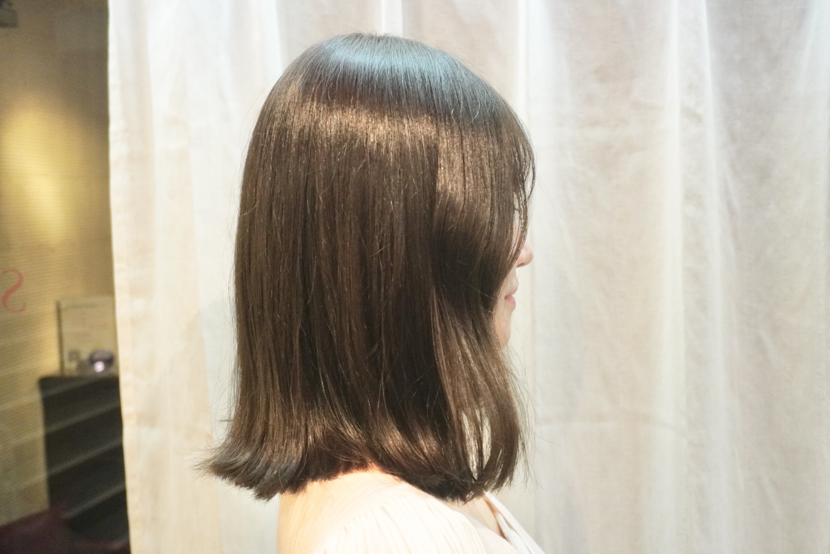 3年近く伸ばしたスーパーロングヘアをバッサリと外はねセミロングヘアまでカットし、カラーリングを行なってアッシュグレーカラーに仕上げました!
