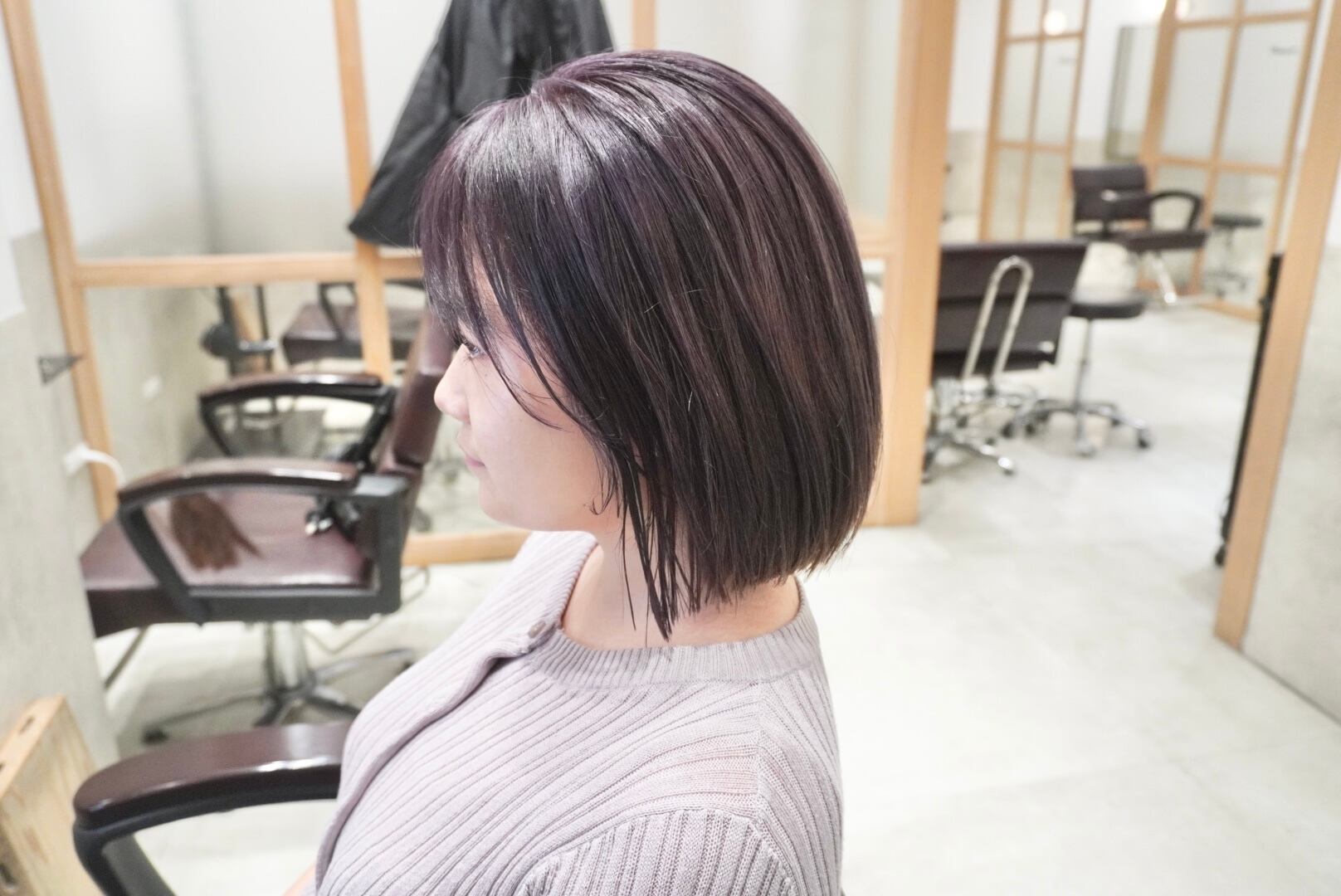 3年ぶりにずっと伸ばしたロングヘアを長めボブヘアにバッサリカットし、カラーリングを行って人生初のブリーチカラーに挑戦し、パープル系カラーに大変身されました!